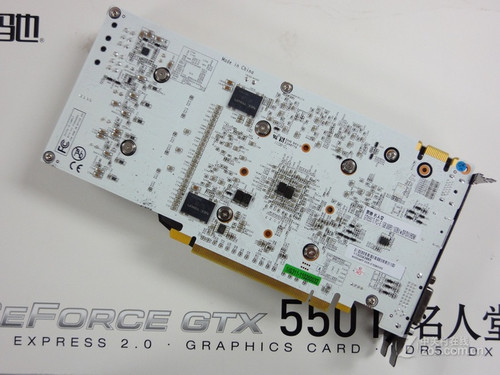 做工方面,影驰 GTX550Ti 名人堂采用白色非公版PCB设计,散热和设计均别具特色。该显卡采用核心与显存独立的供电模式。用料上采用全封闭电容与全封闭电感,并且搭载两颗NEC Proadlizer去耦电容,双6pin外接供电模式,严格保证了显卡的长期稳定运行。