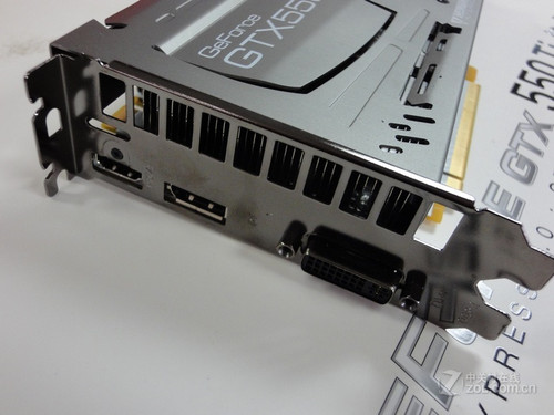 输出方面,影驰 GTX550Ti 名人堂采用DVI+HDMI+DisplayPort输出组合,支持各种类型的双头输出模式,支持HDMI高清输出模式,还可以支持最高2560x1600的高分辨率输出。